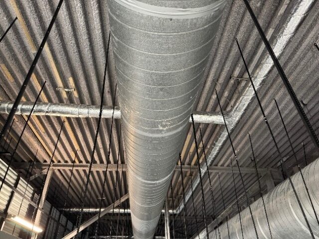Die turnusmäßige Dachträgerprüfung wurde in diesem Jahr fällig, in dessen Rahmen die einzelnen Dachträger auf kompletter Länge durch einen Sachverständigen statisch überprüft werden mussten. Im Gebäudebestand existieren jedoch keine ausreichenden Revisionsmöglichkeiten über das Dach selbst, so dass der komplette Innenraum eingerüstet werden musste, um die Zugänglichkeit unter Einhaltung der sicherheitstechnischen Anforderungen zu gewährleisten. In diesem Zuge sollten weiterhin die undichten, innenliegenden Dachentwässerungsleitungen saniert werden. Nach Schaffung der Zugänglichkeit über das Gerüst und genauer Zustandserfassung musste aufgrund des baulichen Zustandes jedoch von einer Sanierung Abstand genommen und eine Erneuerung der Leitungen ins Auge gefasst werden, was mit zusätzlichen Aufwendungen einherging (u.a. schadstoffgerechter Rückbau) und zu Verzögerungen in der gesamten Ablaufplanung geführt hat.